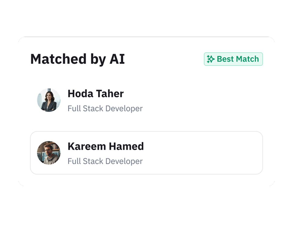 نظامنا المدعوم بالذكاء الاصطناعي يساعدك في اختيار الخبرات المناسبة لاحتياجات مشروعك.